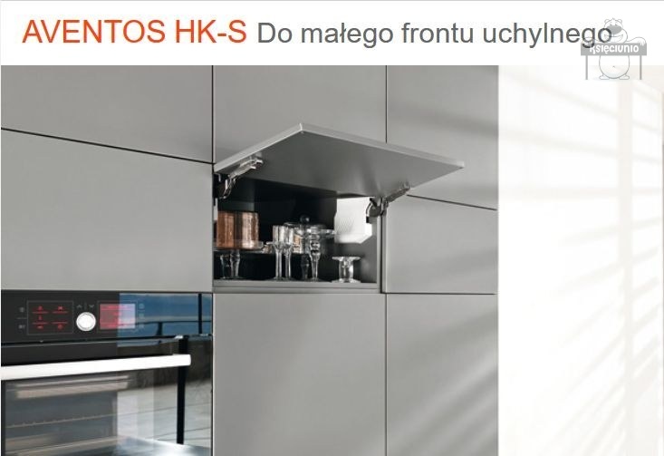 AVENTOS HK-S - podnośnik, który pod względem swojej wielkości oraz mocy siłownika został stworzony specjalnie do mniejszych frontów uchylnych.