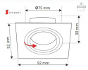 W oprawie można zastosować żarówki led lub halogenowe. Wykonana jest z wysokiej jakości odlewu. Jej nowoczesny wygląd sprawia że doskonale prezentuje się w podwieszanych sufitach.