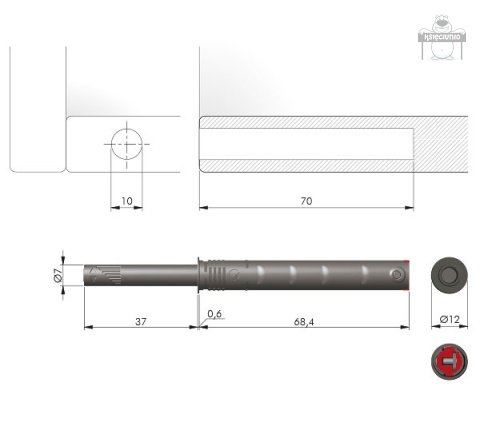 ITALIANA FERRAMENTA ODBOJNIK PUSH OPEN K-PUSH Z GUMKĄ
