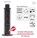 - Dwa gniazda USB z wbudowaną ładowarką 5V/2,1A