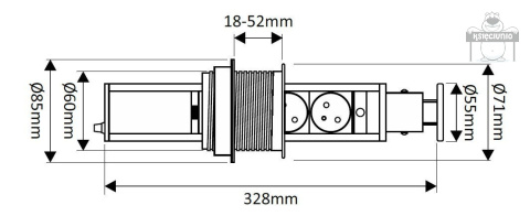 - LISTWA ZASILAJĄCA 3 GNIAZDA INOX CHOWANA W BLAT