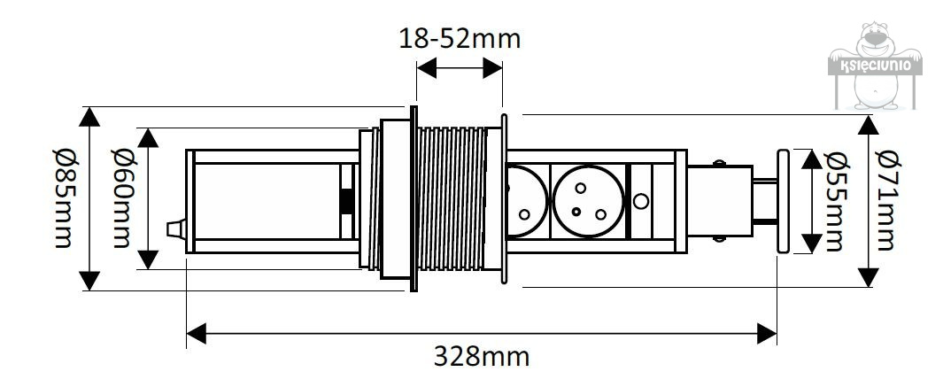 -Średnica górnej części widocznej po przykręceniu listwy do blatu : 71mm