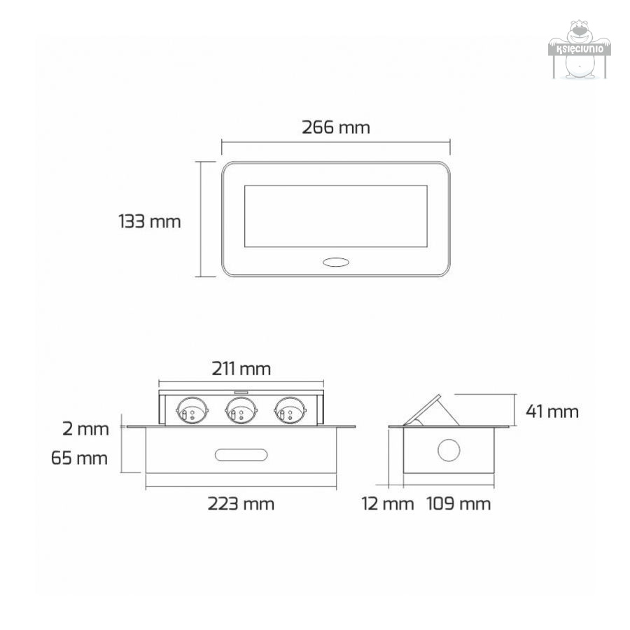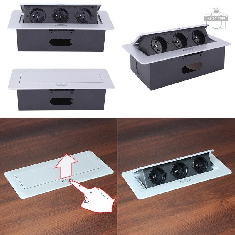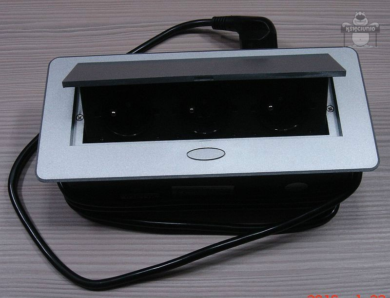 Dzięki siłownikom które są zamontowane w listwie po naciśnięciu przycisku panel z gniazdami płynnie wysuwa się