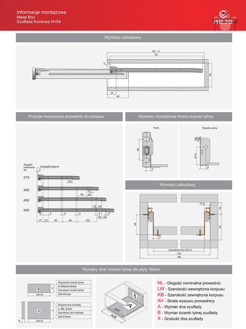 METALBOX - BOKI SZUFLAD Z PROWADNICĄ ROLKOWĄ