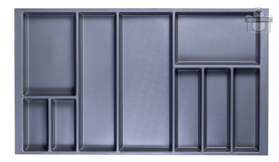 Wkład na sztućce MOVE wykonany jest z grubego tworzywa w kolorze antracyt . Pozwala na zachowanie przejrzystego układu w szufladzie. Wkład do szuflady BLUMA tandembox antaro o szerokości frontu 900 mm i długości prowadnicy 500 mm.