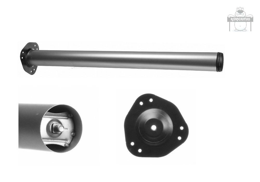 Noga posiada metalowe mocowanie , które jest przykręcane do blatu meblowego za pomocą wkrętów.