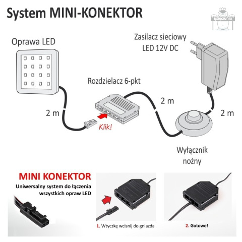- Długość przewodu - 2m przewód zakończony wtyczką MINI-KONEKTOR