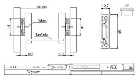 REWELACYJNEJ JAKOŚCI PROWADNICA KULKOWA (PEŁNY PŁYNNY WYSUW) .