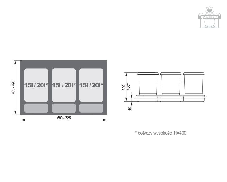 • pojemnik na odpady wkładany do szuflady z wysokim frontem