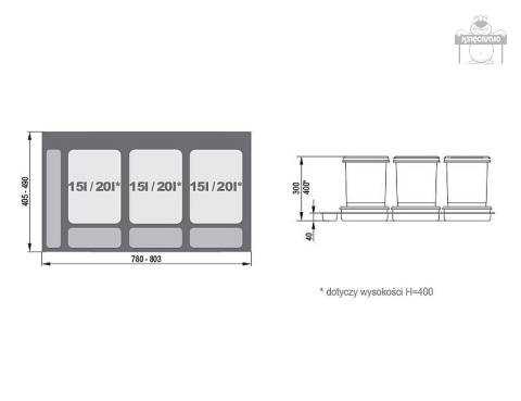 - pojemnik na odpady wkładany do szuflady z wysokim frontem