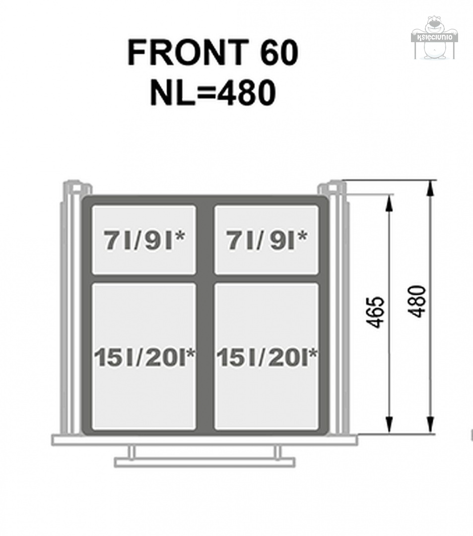 - sugerowana pojemność worków: 2 x 20l + 2 x 35l / 60l