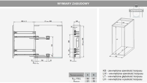 - STRONA SZAFKI - LEWA (montaż prowadnic po lewej stronie)