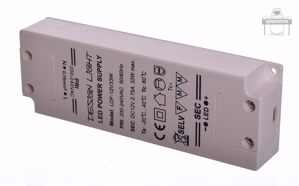 - Jego przeznaczenie to zasilanie oświetlenia LED o napięciu 12V DC i łącznej mocy nie przekraczającej 33W.