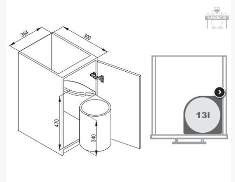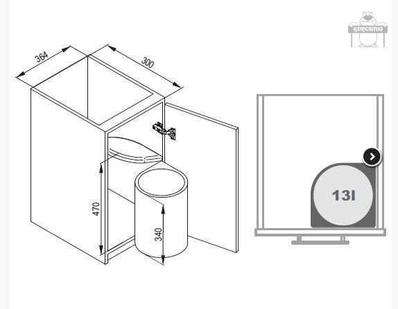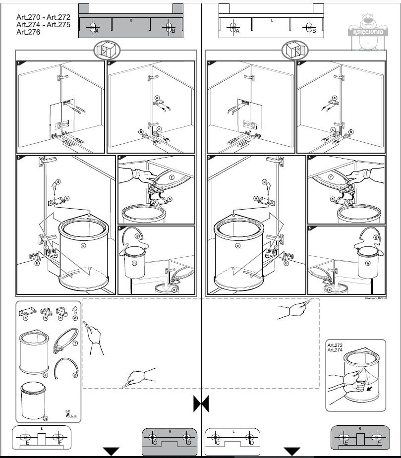 - pojemnik montowany na składaniu drzwiczek i korpusu szafki