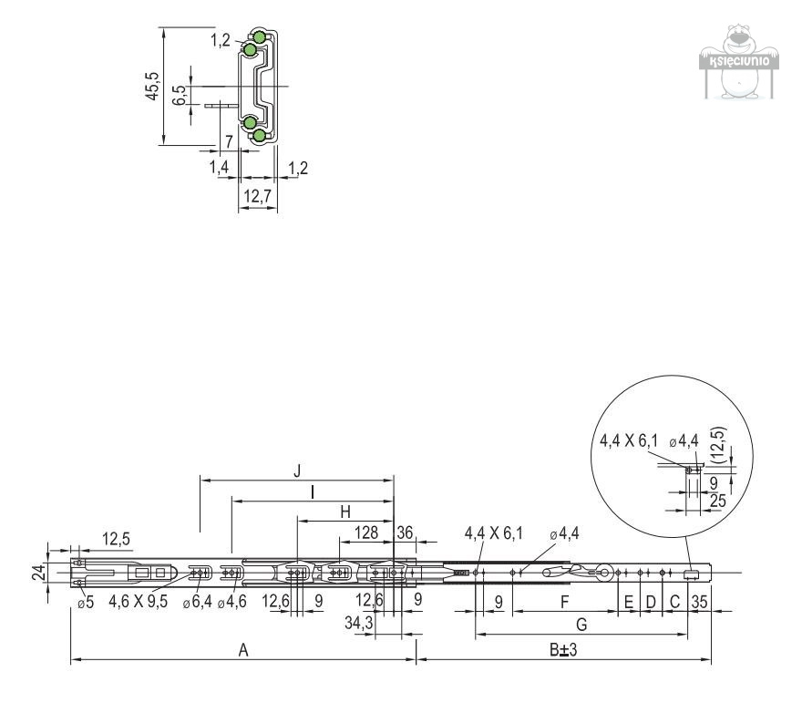 PROWADNICA KULKOWA PEŁNY WYSUW