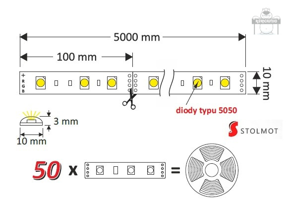 POBÓR MOCY UZALEŻNIONY JEST OD DŁUGOŚCI TAŚMY LED
