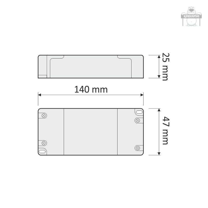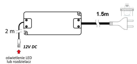 - Jego przeznaczenie to zasilanie oświetlenia LED o napięciu 12V DC i łącznej mocy nie przekraczającej 33W.
